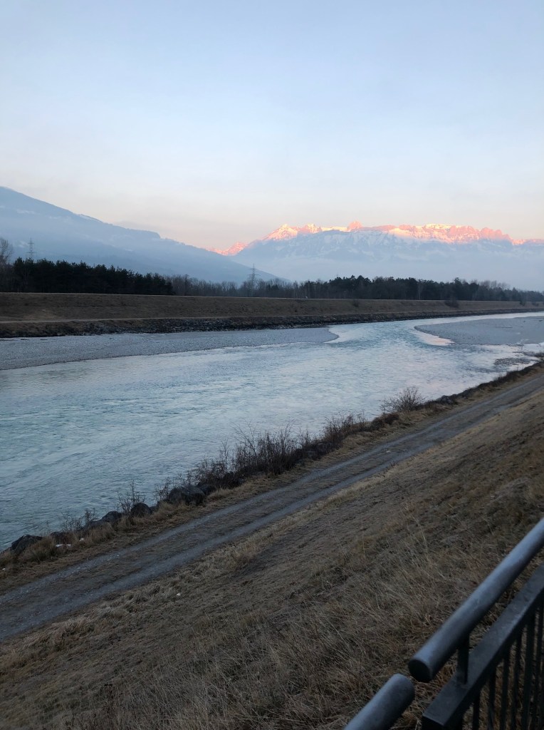 I was in Liechtenstein for a few days. This picture is the view of the Rhine River and the Swiss Alps