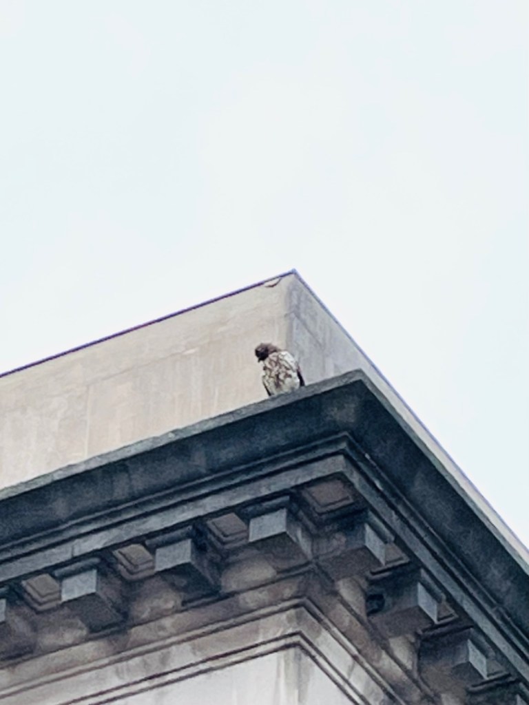 Today I hit the jackpot. I was walking north on Atlantic Street coming up to the Old Town Hall. I looked up to see the time and there was a hawk watching the sights of downtown Stamford.