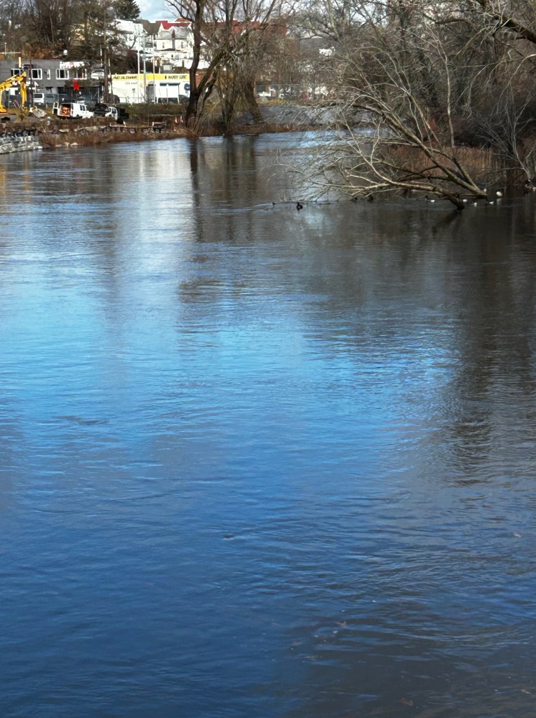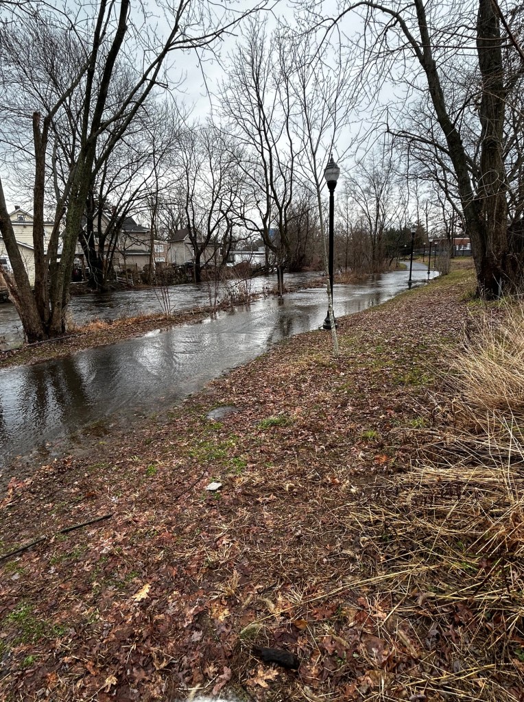 Down at Mill River Park the water was roaring through the park.