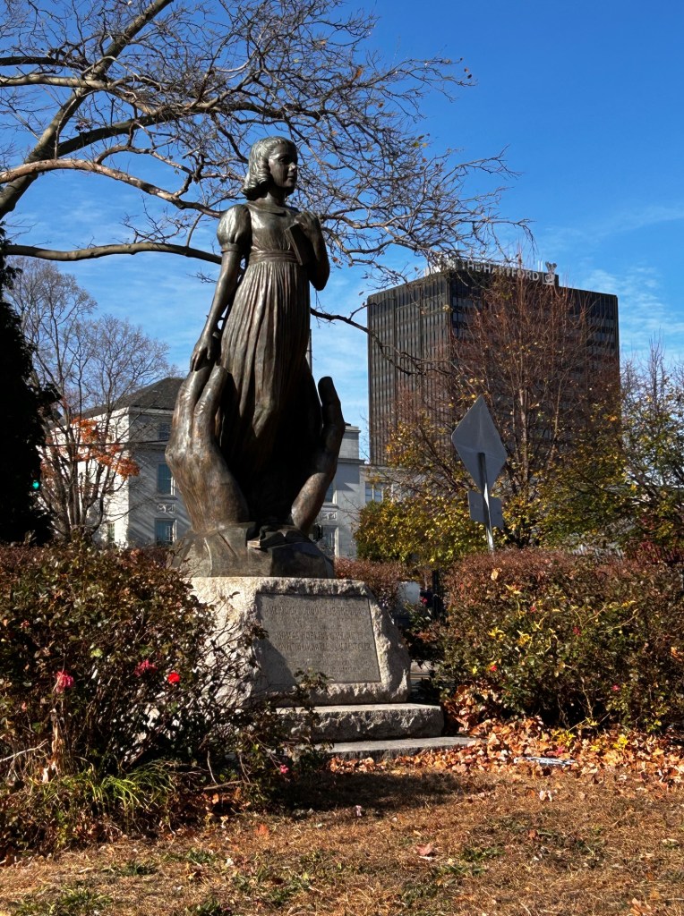 This is a statue of a blind girl. Thomas Gallaudet started a school for the handicapped in Hartford in the early 1800’s.