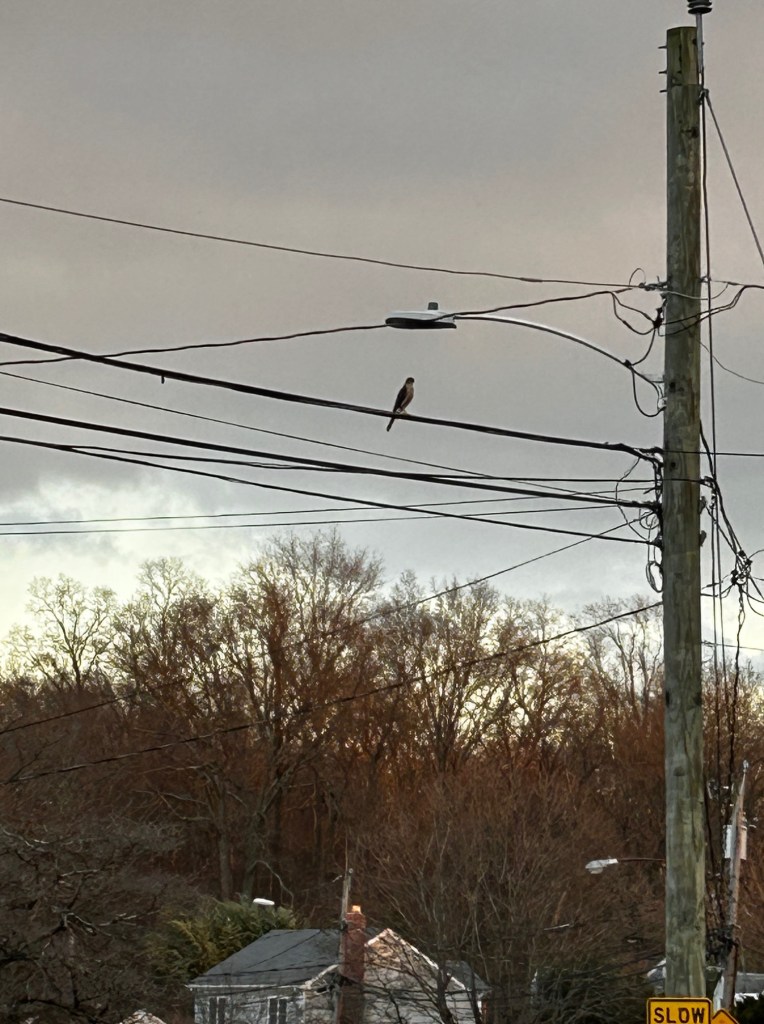 I consulted with a bird expert, my grandson, about what type of small hawk it was. My grandson suggested. It might be a kestrel. It wasn’t. We still aren’t sure what hawk it was.